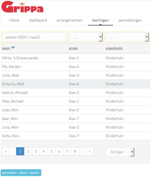 Grippa geeft een overzicht van beschikbare arrangementen en van arrangementen die de leerling mogelijk al volgt of heeft gevolgd.