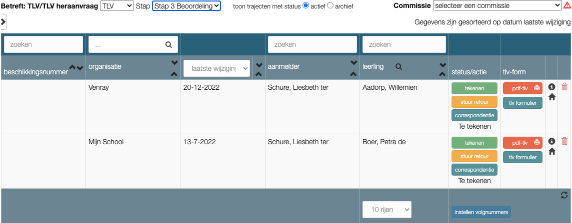 Als alle verplichte formulieren zijn ingevuld, wordt de aanmelding kenbaar gemaakt aan de leden van een besliscommissie (commissie aanmeldingen o.i.d.). Deze commissie neemt de beslissing om een leerling toe te wijzen aan een of meer arrangementen.|